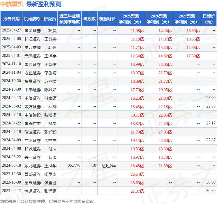 盈利预测与评级:公司是我国航空锻造领域领军企业,装备主业稳健向好,国产大飞机、国际转包以及航天、深海等新领域不断发展。我们预计,公司2025-2027年归母净利润分别为12.64/14.82/17.50亿元,对应PE为18.70/15.94/13.50x,维持“买入”评级。